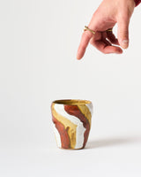 This piece is a one off, unique, and functional tumbler. Each one a unique object, made intuitively with love. When used, they create a moment for connection – with someone else, with the moment, with the sustenance and beauty they are holding space for.
