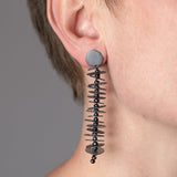 Elfrun Lach — Long Pearl Drop 'Coral' Earrings in Black with Oxidised Sterling Silver Studs