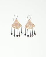 Pair of hand formed, glazed ceramic, sterling silver and freshwater pearl earrings in a chandelier curtain style. Completely handcrafted in Melbourne, Australia.