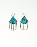 Pair of hand formed, glazed ceramic, sterling silver and freshwater pearl earrings in a chandelier curtain style. Completely handcrafted in Melbourne, Australia.