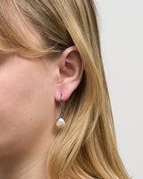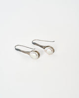 Each pearl is unique just like each earring. Free-formed Keshi pearl is hugged by a silver setting that is hand sculptured to accompany the particular shape of the pearl.