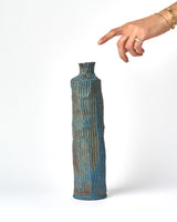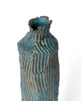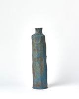 In the mark-making of damage and wear, and the ongoing lifecycle of repair and reuse, this collection of vessels from Em Frank brings together materials that do not usually coexist – industrial metal handles on delicate ceramic forms, shattered windscreen glass melted into glaze. Interested in how things come apart and are put back together in a new life, Em Frank's work often begins with a moment of material curiosity, sparked by everyday surfaces that have succumb to their environment. The texture of an eroded wall, paint cracking in the sun, or the soft folds of a metal object that has been squashed.