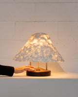 Material: Recycled cotton, oxidised Victorian ash, wax, stainless steel, linen cable, LED bulb, recyclable thermoplastic