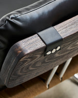 The collection features a restrained palette of stained timber, raw metal, undyed recycled fabrics, paper cord and cactus leather. Lampshades are made from textile waste, timber is stained using iron oxide derived from metal waste, and leather is sourced from food waste. Traditional craft techniques intersect with industrial processes, balancing precision with intuition. Each piece is designed for longevity - constructed to be repaired, disassembled, and ultimately recycled.