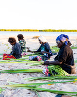 Jocelyn Wilfred is a Ritharrngu artist who lives and works with her sisters and niece in Numbulwar. Over four decades, she hones her own individual style, predominantly working with naturally-dyed pandanus and ghost nets.