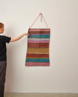Numburindi people have used dilly bags for thousand of years for practical and ceremonial purposes, but not until recently were they produced from repurposed ghost nets and shade cloth fabric. Dilly bags, or yir in Nunggubuyu language, are customarily made from pandanus or bark fibers, and dyed or painted with shades of ochre.
