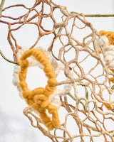 Material: Raffia (natural & bush dyed), jute twine, rover wool, Flax, cordage, chicken wire, bees wax. Natural dyes include Eucalyptus leaves, brown & red onion skins.