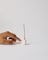 Material: slip-casted porcelain large and small rabbits, found rabbits, fabric covered box,, Gucci-esque ribbon, Louis Vuitton-esque ribbon