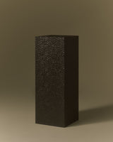 Material: solid timber with a stained finish. Each plinth is hand-carved from solid timber in our atelier, showcasing an organic texture and craftsmanship.