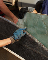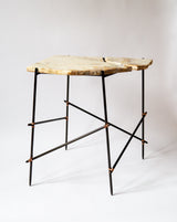 Pairing the eccentricities of each salvages stone with a hand-crafted frame is one of many tender acts of restoration in the Remnants Collection. The stones are hand finished, while the steel frames - reminiscent of ad hoc scaffolding - are patinated, sealed, and meticulously bound with copper wire detailing.