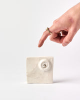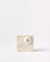 Material: Porcelain slab form with oxide wash, a porcelain ball and porcelain coated gauze broken veil with a satin glaze. Oxidation firing.