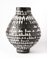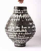 She hand builds her pieces, which are often large in scale, and is primarily concerned with exploring the aesthetics of the vessel form and in the surfaces of her pieces through mark making and texture.