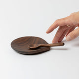 A set including a small spice bowl and matching timber spoon. Hand carved in solid walnut.