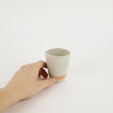 Small vessel with pouring spout and contrasting base finished in a light shino glaze.
