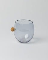 Hand blown whiskey glass in pale blue, studded with a timber handle. The perfect companion for the Halo decanter with timber stopper.