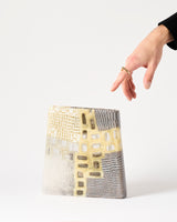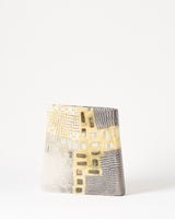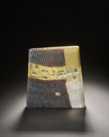 Giles Bettison is a South Australian artist, known for his unique and strikingly beautiful application of colour, patterns and forms in his continual exploration of the traditional techniques of Murrine glass. His works invite a subtle contemplation of the inspiring essence of rural and outback Australia. While still a student at Canberra School of Art, he adapted the ancient Venetian glass technique of murrine (the fusing and cutting of bundled glass canes) to a new material: an American-made colored sheet glass. Giles was at the forefront of developing Bullseye glass towards a compatible state, changing the chemistry of sheet glass so that it was user friendly. By using strips of sheet glass instead of cane, Bettison was able to achieve the appearance of woven textiles.