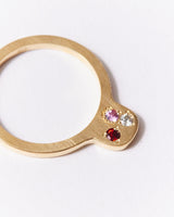 Daria Fox — 'Three Sisters' 9ct Gold Ring with Diamond, Sapphire and Garnet