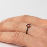Materials: 4mm pink sapphire, 18ct gold, oxidised sterling silver,
