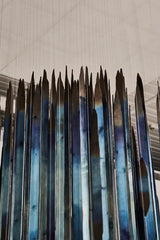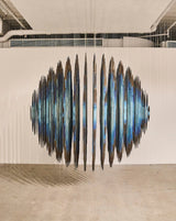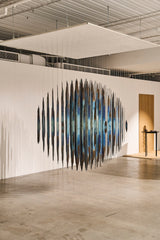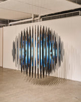Ephemeral Blue is a large-scale spherical installation. The piece is comprised of 156 strips of radiata pine that have been individually formed, burnt at each end and then hand-dyed using Japanese indigo. The piece is a contemplation on the preciousness and beauty of fleeting moments, and the associated feelings from these moments that resonate for a time afterwards - the time during dawn and dusk. In a sense, the work is a compilation of beautiful moments culminating in the overall final form. “Each element is just one strip of wood, but all together they become more meaningful…the little parts matter, every part matters. Everything matters.”- Makiko Ryujin.