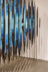 Ryujin chose to work with indigo for its cultural connection to Japan, her home country, but also for its ability to create gradient and in turn allude to movement and the passing of time. The artist has used radiata pine – an ordinary material that is widely accessible, used for construction and given little aesthetic regard. Here, Ryujin celebrates pine as a material, placing it at the forefront of the work, the dye highlighting its features and grain and reestablishing its deserved value.