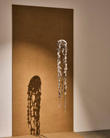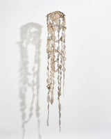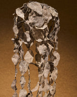 Fallinglight II explores the transformative qualities of dusk, where darkness meshes into the dissolving light of the day. Constructed from a unique ‘threshold’ material made by slowly growing copper and silver into organza through electroforming, the work expresses a state of transformation, held in material. Over numerous years, sections of organza were stitched through dusk - from the time I sensed light falling until its completion in darkness. These individual ‘dusks’ were then electroformed and threaded together, accumulating into a form referencing the human body. The entire work presents a field of evenings, a gathering of thresholds, felt and passed through.