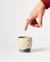This piece is a one off, unique, and functional tumbler. Each one a unique object, made intuitively with love. When used, they create a moment for connection – with someone else, with the moment, with the sustenance and beauty they are holding space for.