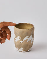 This piece is a one off, unique, and functional tumbler. Each one a unique object, made intuitively with love. When used, they create a moment for connection – with someone else, with the moment, with the sustenance and beauty they are holding space for.