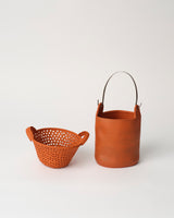 I choose to work with a local natural terracotta clay for environmental and aesthetic reasons. It matures at a low temperature therefore using less fuel than other clays and is easily sourced locally using minimum carbon miles. Its intense red ochre colour is symbolic of the Australian outback. I also wish to share some of its lesser-known environmentally-sound properties such as the evaporative cooling and heat-insulating capacities that arise from its porous nature. Terracotta is truly an amazing clay that we all know through roof tiles to water pipes but within the ceramic craft spectrum it has often been seen as somewhat "lessor". In using it I seek to draw attention not only to its value but the need for urgent climate action.”