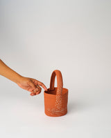 I choose to work with a local natural terracotta clay for environmental and aesthetic reasons. It matures at a low temperature therefore using less fuel than other clays and is easily sourced locally using minimum carbon miles. Its intense red ochre colour is symbolic of the Australian outback. I also wish to share some of its lesser-known environmentally-sound properties such as the evaporative cooling and heat-insulating capacities that arise from its porous nature. Terracotta is truly an amazing clay that we all know through roof tiles to water pipes but within the ceramic craft spectrum it has often been seen as somewhat "lessor". In using it I seek to draw attention not only to its value but the need for urgent climate action.”