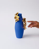 Jessica Sellinger— 'Gold Wave Draped Blue', Sculptural Vase