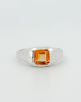 The BACCHUS Ring is a striking angular signet ring, designed and handmade in our Melbourne Studio. This piece is set with a bright citrine, in a square emerald cut.