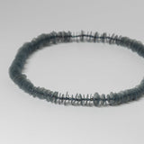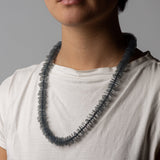 Necklace from the Coral Series featuring hand cut polypropylene discs layered between black pearls.