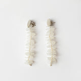 Drop earrings from the Coral Series featuring sterling silver studs with hand cut polypropylene discs layered between white pearls.