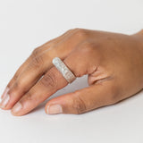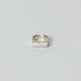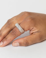 The bridge leads. Builds. Transforms one space to the other. It is a conversation. The Bridge Ring (Patina) has a textured layer on the top of the ring, adding a notion of time to the original design.