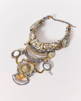 Kate Durham's jewellery works against an agreed definition of modern value. Kate's work seeks out decorative design elements that tend to challenge the notion of minimalism and the value of material. Kate works with found objects which explores the use of non-valuable materials within a jewellery lens. Engaging the ideas of femininity, desirability and history, with an aesthetic and cheekiness.
