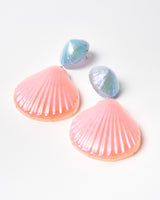 The Large Fan Shell Earrings reimagine shell jewellery for the 21st century. They are the perfect statement earring for lovers of large fun vibrant jewellery that shout joy. They are in iridescent blue and pink made from thermoforming plastics and the industrial process of vacuum forming. Do not submerge in water.