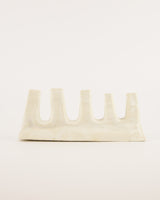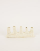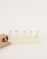 The 5 stem vase holds 5 small buds or dried stems to create a unique floral tableaux. Hand built stoneware and glazed.