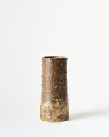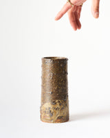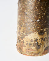 This sculptural vessel is wheel thrown and assembled stoneware with eucalyptus ash glaze and slate rocks processed to create a textured slip glaze. This vessel references the upturned and rearranged Central Victorian Goldfields landscape where the artist lives and works, on Dja Dja Wurrung Country. The work asks us to contend with the lasting impacts of our actions while at the same time valuing what remains- celebrating this landscape in recovery.