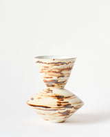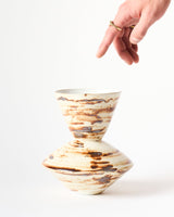 This sculptural vessel is wheel thrown and assembled stoneware with collected wild ochre rocks, processed to create an iron oxide slip glaze. This vessel references the upturned and rearranged Central Victorian Goldfields landscape where the artist lives and works, on Dja Dja Wurrung Country. The work asks us to contend with the lasting impacts of our actions while at the same time valuing what remains- celebrating this landscape in recovery.