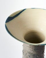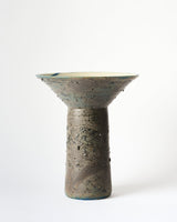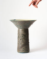 This sculptural vessel is wheel thrown and assembled stoneware with collected slate rocks, processed to create an iron oxide slip glaze. This vessel references the upturned and rearranged Central Victorian Goldfields landscape where the artist lives and works, on Dja Dja Wurrung Country. The work asks us to contend with the lasting impacts of our actions while at the same time valuing what remains- celebrating this landscape in recovery.