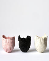 Lorraine's creative journey is one of self-discovery, guided by the tactile intimacy of clay. Through relentless experimentation, Dean challenges the material’s limits—sculpting vessels from within to expose a dialogue between vulnerability and strength. Each piece becomes a meditation on the human condition, revealing the layered complexity that shapes who we are. Dean has developed a process that fuses both porcelain and fabric in a single firing, allowing these contrasting materials to merge in delicate tension. Through folds and layers, Dean explores the "emotional resonance and the quiet threads that connect us— echoes of memory, relationship, and lived experience."