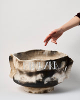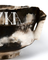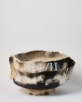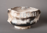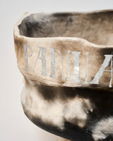 Material: Pit fired ceramic, silver-painted text