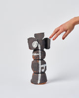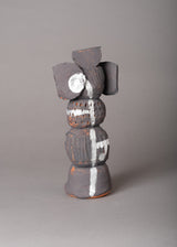 Material: Handbuilt ceramic, black iron oxide, silver-painted surface