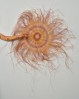 A Marebu is a traditionally woven mat, which is made from natural, locally sourced materials from the Kakadu/West Arnhem Region. Weavers gather fresh kunngobarn (pandanus), from the young leaves in the middle of the palm using a hooked stick called a manmarli, once harvested in large quantities. Kunggobarn is then striped into two, split into fine strands and dried. Once dried, the pandanus is then ready for dying.