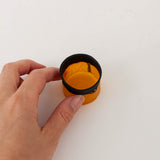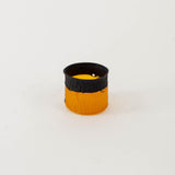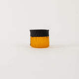 Small, yellow vessel with dark rim made from algae bioplastics.