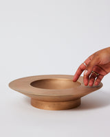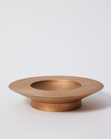A circular vessel cast in solid bronze.