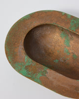 An oval vessel cast in solid bronze, patinated
