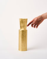 A handcrafted brushed brass vase, made for the water tower series. Part of an ongoing series from Kenny Yong-soo Son which explores the creation of vessels using metal and geometrical forms.