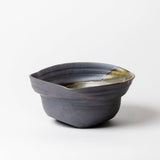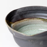Wheel-thrown bowl made from reclaimed clay and finished in matte black and a pale blue ash-glazed interior. Made for daily use, and dishwasher safe.