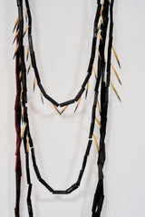 "This body of work centres on river reed necklaces, a practice and knowledge that has been revitalised and passed down to Molly by my Aunty Maree Clarke. River reed necklaces were traditionally gifted to mobs passing through as a sign of safe passage through Country, a gesture of respect and care for those journeying across the land.